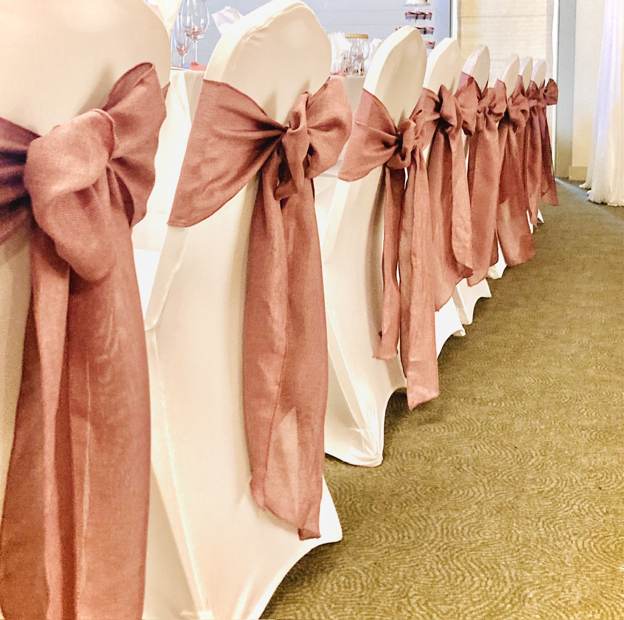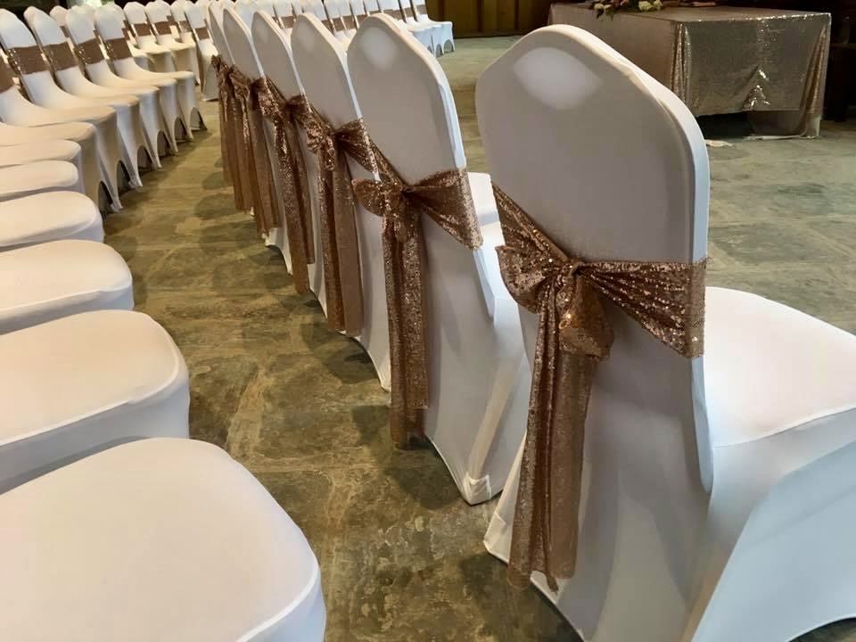 At Bride and Beautiful Events, we offer a huge selection of chair covers with sashes or bands to effortlessly elevate the visual appeal of your event décor in ANY colour you wish.