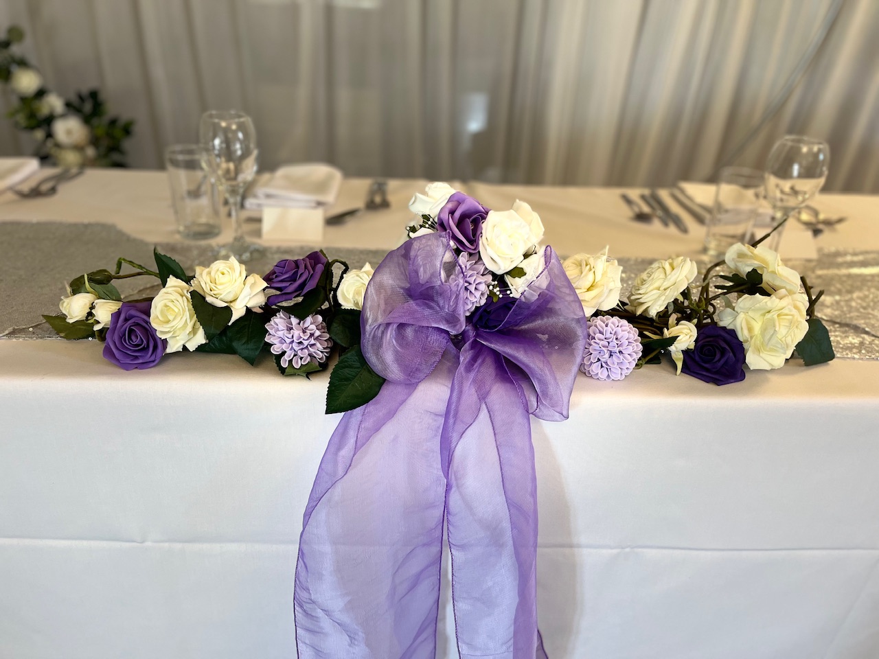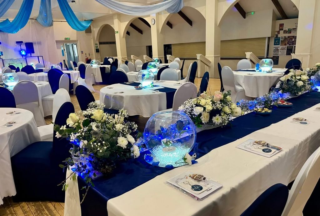 Chair covers with beautiful sashes fitted starting from just £2.95…….Table linen with beautiful satin runners starting from £9.